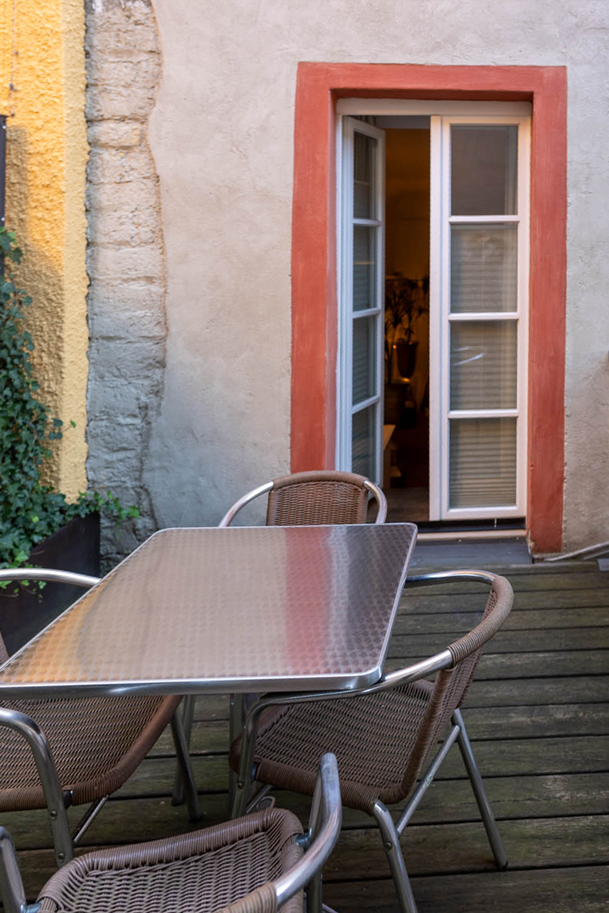 This fully appointed, 96 m2 appartement, consists of two consecutive rooms and a patio with a view of our inner court yard. It can accommodate up to 5 people comfortably.